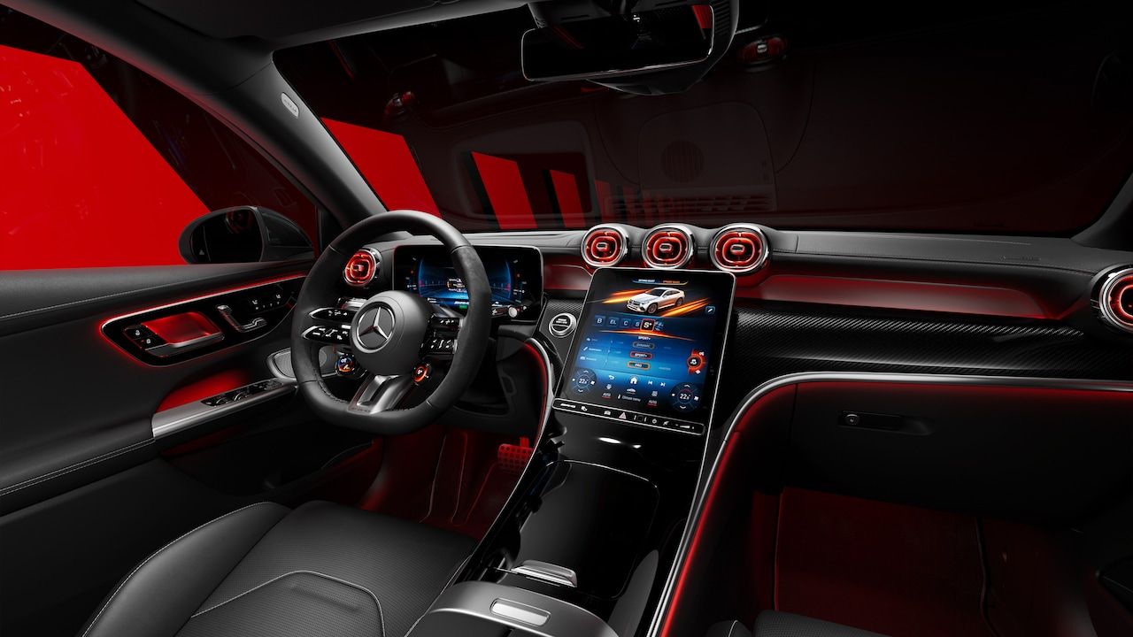 Вы не садитесь в салон, а занимаете место водителя. Кокон из искусственной кожи Artico/Microfiber с контрастной строчкой, ковшами AMG с развитой боковой поддержкой и рулем с отделкой «Alcantara» с элементами управления «на кончиках пальцев». Перед вами — widescreen-дисплей MBUX с фирменной графикой AMG и гоночным тахометром. Металлические педали и красные ремни безопасности — финальные штрихи, настраивающие на спортивный лад. Это пространство, где каждая деталь подчинена одной цели — полному слиянию с водителем.